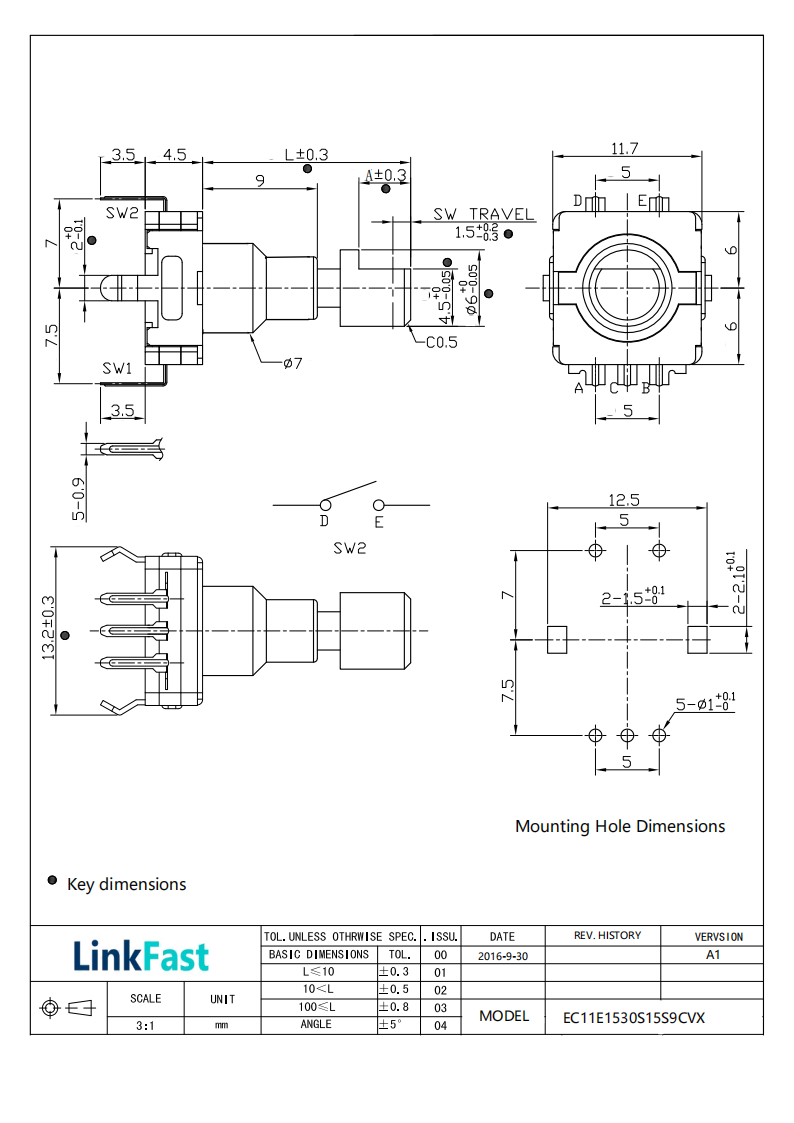 An encoder is a device that converts the rotation or movement of a control shaft into digital electrical signals. Its output can be divided into two types: absolute and incremental. These signals are detected either by mechanical contact (using electrical contacts) or non-contact methods such as optical or magnetic sensing. Link Fast Group mainly provides contact-type encoders that use sliding contacts and pattern switches.