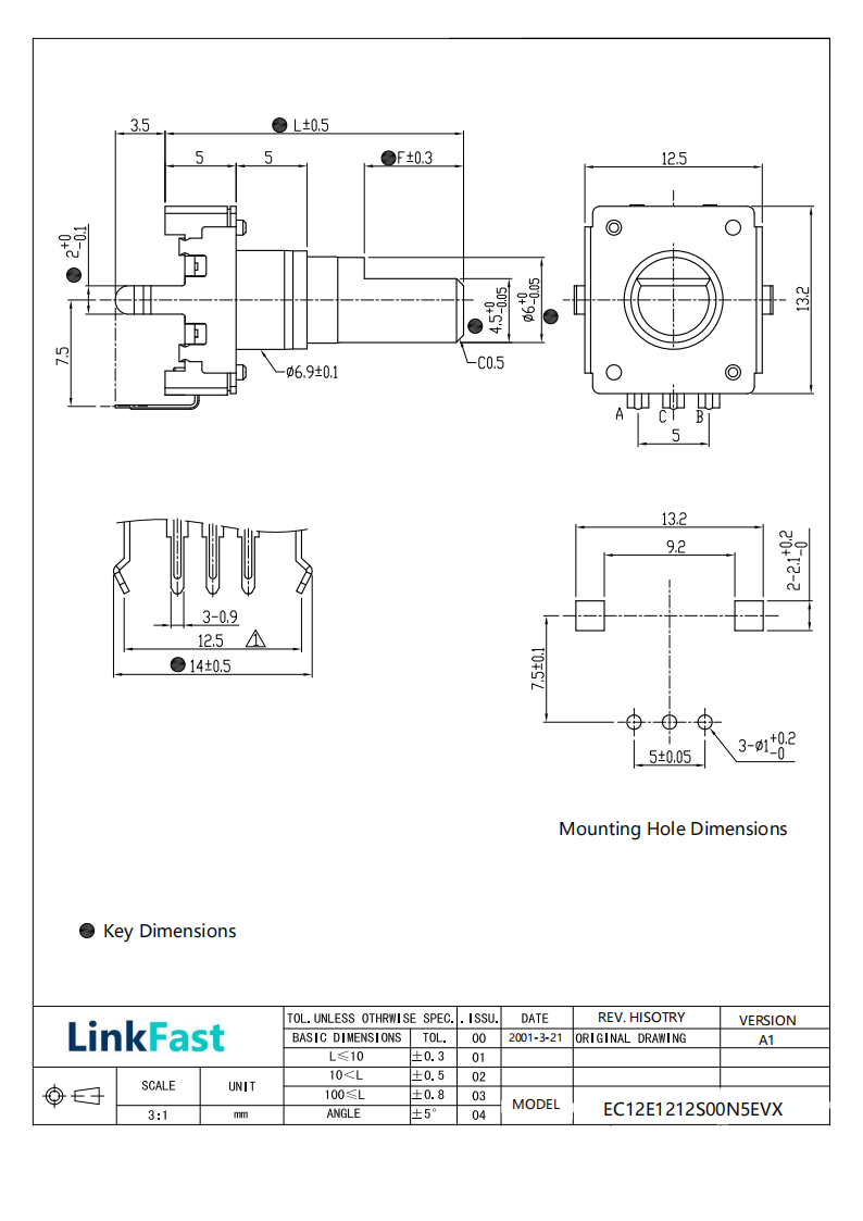 | Mechanical performance | Detent torque | 10±7mN・m | ||