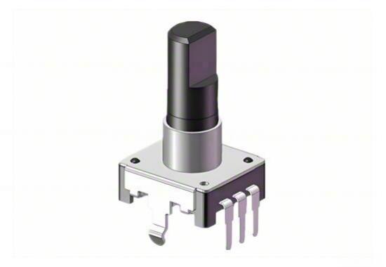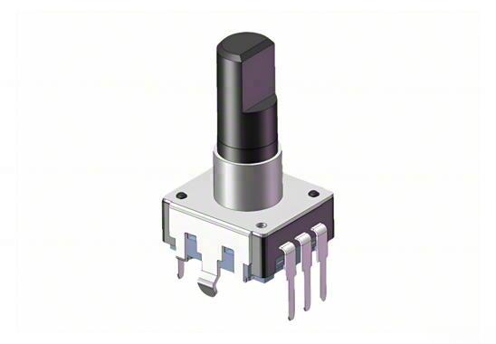 Insulated shaft, without push-on switch, vertical PCB through-hole mounting